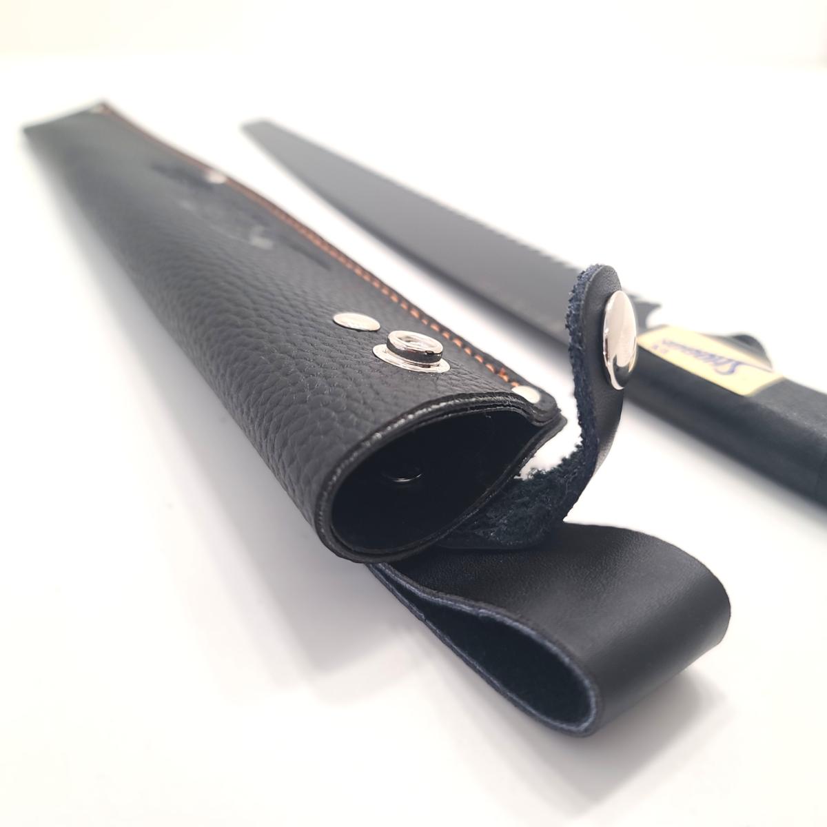 Le fourreau est en Polyéthylène, recouvert d'un élégant cuir noir cousu et riveté.